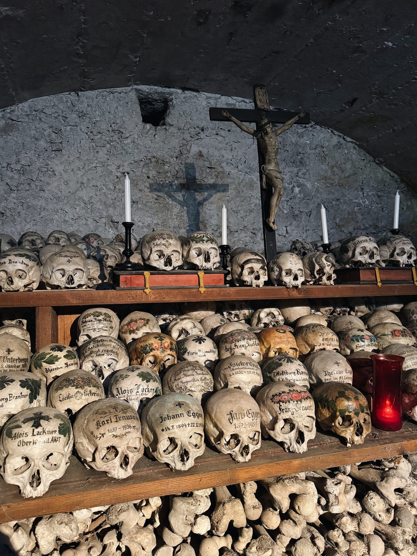 The people of Halstatt were, and are quite poor, and they could not afford to bury their people. So their bones sat here. The Soviets invaded and rummaged through this “Bone House”, looking for loot of sorts: guns, material, money, what have you. There was nothing, and so, it ended up in this pile.